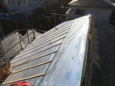 BLOG 屋根遮熱リフォーム 2017年2月14日 現在、さいたま市にて屋根の遮熱リフォームの工事中です。 既存の屋根材を解体し、遮熱シートを敷設し空気層を作ります。 夏の暑さによる室内への影響に大変効果的です。