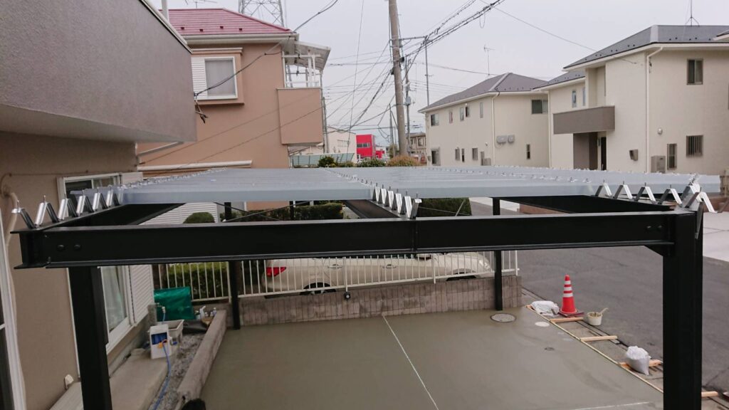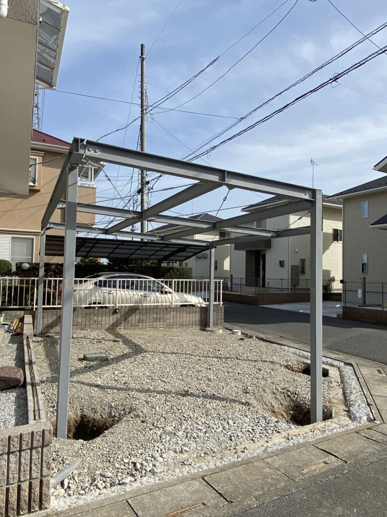 この度はカーポートを鉄骨で組み、作成致しました。
